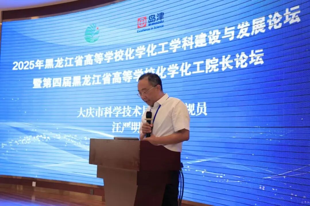 周丹致欢迎辞,对参会代表的到来表示热烈欢迎,介绍了大庆师范学院在化学化工学科建设、人才培养及服务大庆油田产业发展方面的实践与成果。汪严明致辞,介绍了大庆市在落实习近平总书记“油头化尾”重要指示精神,在科技创新推动石化产业创新、绿色发展,实施“领雁”“英雁”“新雁”人才专项、加快布局科创平台、高标准打造环大学大院大所创新创业生态圈的举措和成效,对本次论坛在大庆召开给予了高度评价。