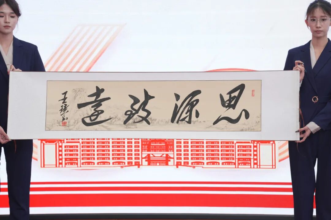 主旨发言结束后,现场举行了温馨的校友捐赠仪式。王璟向母校赠送了自己精心创作的书法作品,作品笔势苍劲有力,字里行间饱含着对母校60华诞的美好祝福。康忠伟代表学校接受捐赠,为其颁发捐赠证书,并表示衷心感谢。