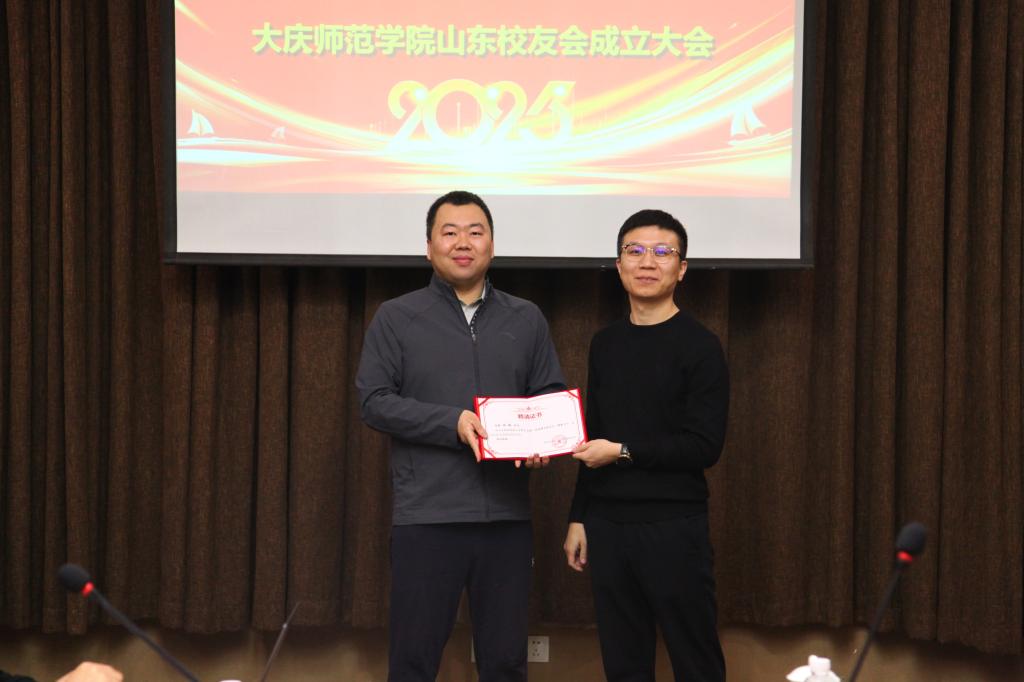 大会期间,全体参会人员共同观看了学校校庆宣传片《六秩逐光》,回顾学校60年的发展历程与育人成果。会议审议通过《大庆师范学院山东校友会章程》,并由校友代表选举产生第一届理事会成员。学校办公室主任、黑龙江省大庆师范学院校友会会长杜树祥,现场宣读了学校《关于同意成立大庆师范学院山东校友会的批复》及《大庆师范学院山东校友会第一届理事会成员组织架构名单》。