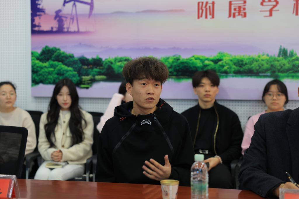 在大庆市第三中学,座谈会由该校校长高峰主持,三中领导班子、我校四名集中实践锻炼教师及混合编队实习、见习学生代表共同参会。会上,大庆市第三中学副校长刘鋆星详细介绍了四位实践锻炼教师的工作进展,以及混合编队师范生实习、见习的整体情况。随后,实践锻炼教师代表王琳和师范生代表结合两月来的实践经历作典型发言,分享了实习过程中的所见所感与成长收获。我校相关职能部门和学院领导与师生现场交流工作心得,对大庆市第三中学给予学校实践工作的支持表示诚挚感谢,并对师生提出了具体工作要求与发展期望。