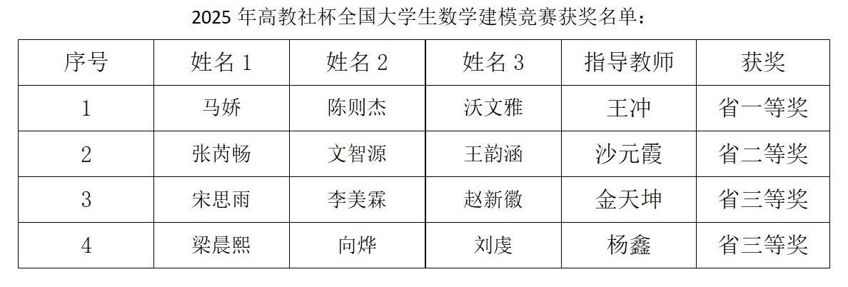近日,2025年全国大学生数学建模竞赛黑龙江赛区获奖名单正式揭晓。我校学子在本次竞赛中表现优异,共获得省级一等奖1项、二等奖1项、三等奖2项。