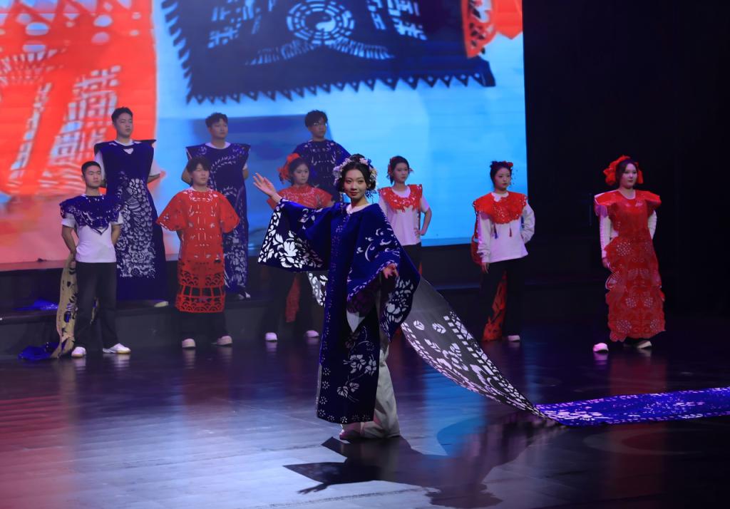 美育精品展《指尖裁锦绣 版拓铸匠心—剪纸版画传承》立足大庆红色资源,将剪纸、版画等传统艺术与红色主题相结合,展现了文化传承与精神弘扬的创新融合;朗诵《永远的号子》以饱满的情感与铿锵的话语,致敬铁人,致敬石油人,抒发“我为祖国献石油”的豪迈情怀。