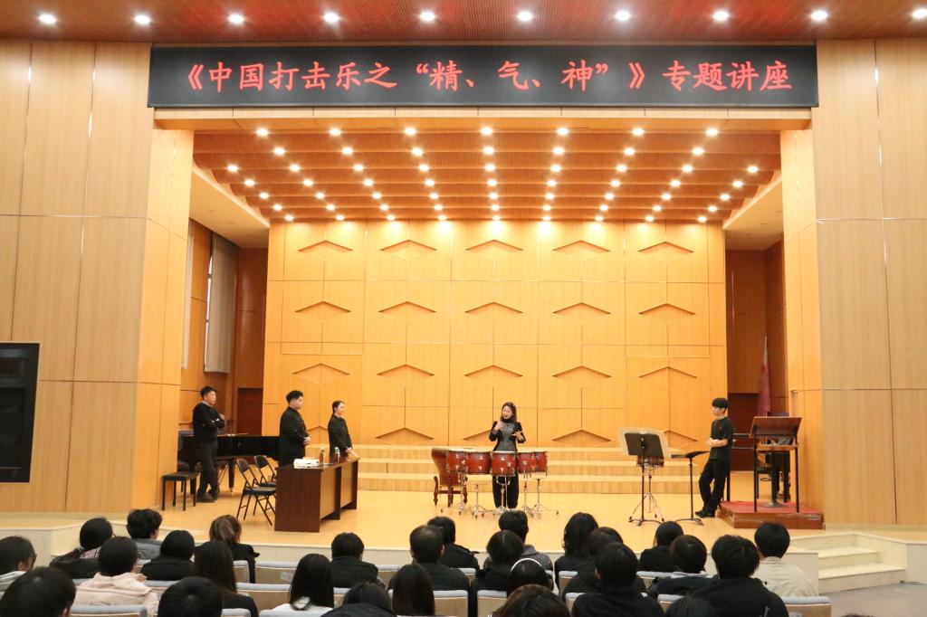 聘任仪式后,宋艺博在音乐与舞蹈学院二楼音乐厅开展《中国打击乐之“精、气、神”》专题讲座。她指出当前打击乐教学存在“精之不足、气之不贯、神之不明”痛点,并提出三维推进策略,一是重构递进式课程体系,二是创新校内外结合的实践模式,三是建立四维评价机制。为师生带来前沿教学指引。