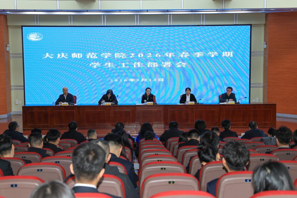3月13日,大庆师范学院在博雅讲堂召开2026年春季学期学生工作部署会,全面总结2025年学生工作成效,分析新形势下学生工作面临的机遇与挑战,系统部署新学期学生工作重点任务。校党委副书记、工会主席刘迪出席会议并讲话,学生工作部部长王贺民主持会议。