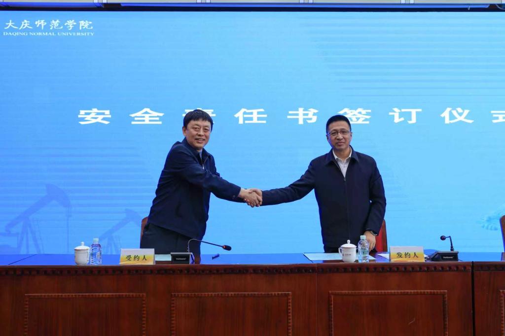 会上,外国语学院、计算机科学与信息技术学院、教务处作了工作汇报交流,涉及学生安全教育、学生心理健康、教学安全管理、实验室安全管理等多项专业领域。张平与音乐与舞蹈学院、美术与设计学院代表现场签订了2026年度安全责任书。