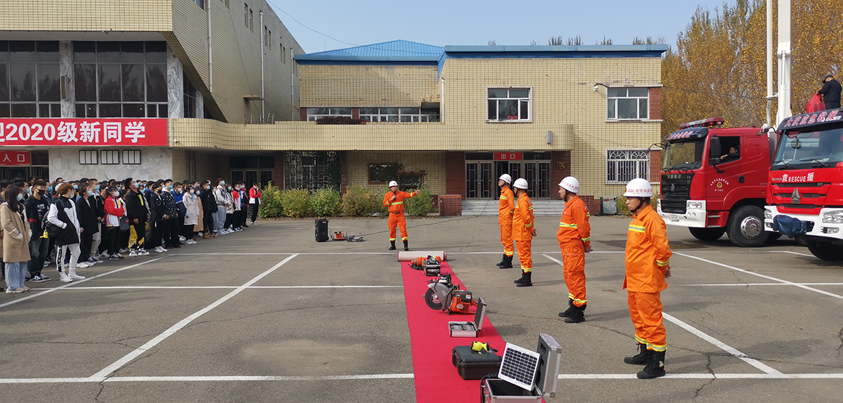 为提高2020级新生消防安全意识和自防自救能力,养成良好安全行为习惯,确保在突发火灾事故时,能够高效、有序的进行灭火逃生。2020年10月10日、11日在大学生活动中心利用2天时间分4场次,对2020级3000余名新生进行安全法制教育演练及应急救援装备器材展示活动。