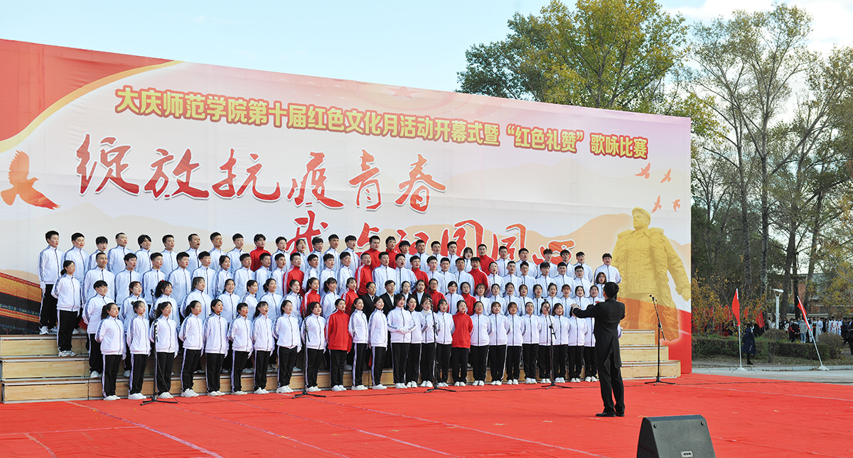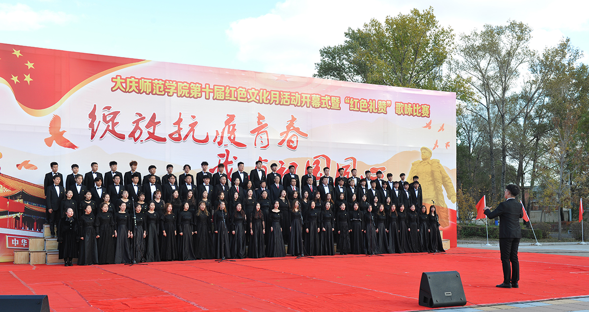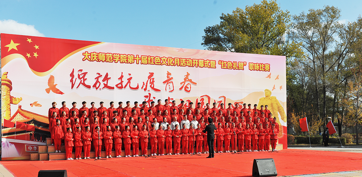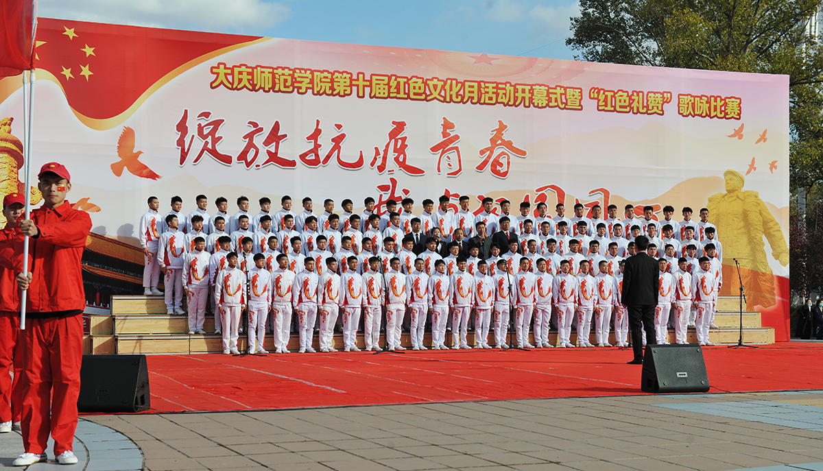 为弘扬爱国主义精神,传承发扬大庆精神铁人精神,重温红色经典,增强我校师生的凝聚力,10月14日,由校团委主办的第十届红色文化月活动开幕式暨“绽放抗疫青春 我与祖国同心”歌咏比赛在我校音乐广场举行。党委书记徐克明、党委副书记王革、副校长刘恒、工会主席徐晓东等校领导以及各机关部门领导、各二级学院师生约两千八百人一同观看了演出。