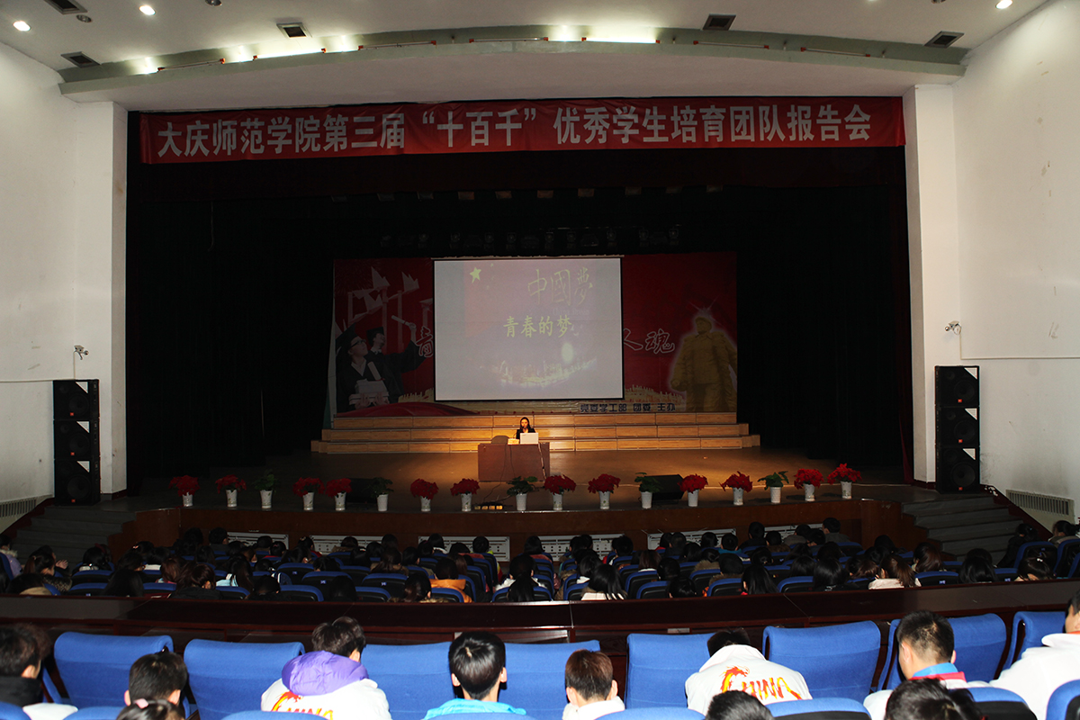 12月3日下午,我校在大学生活动中心举行“十百千”优秀学生培育团队专题讲座,本次讲座的题目为《中国梦 青春的梦》,由团队指导教师卞清霞主讲,全体团队队员参加了讲座。