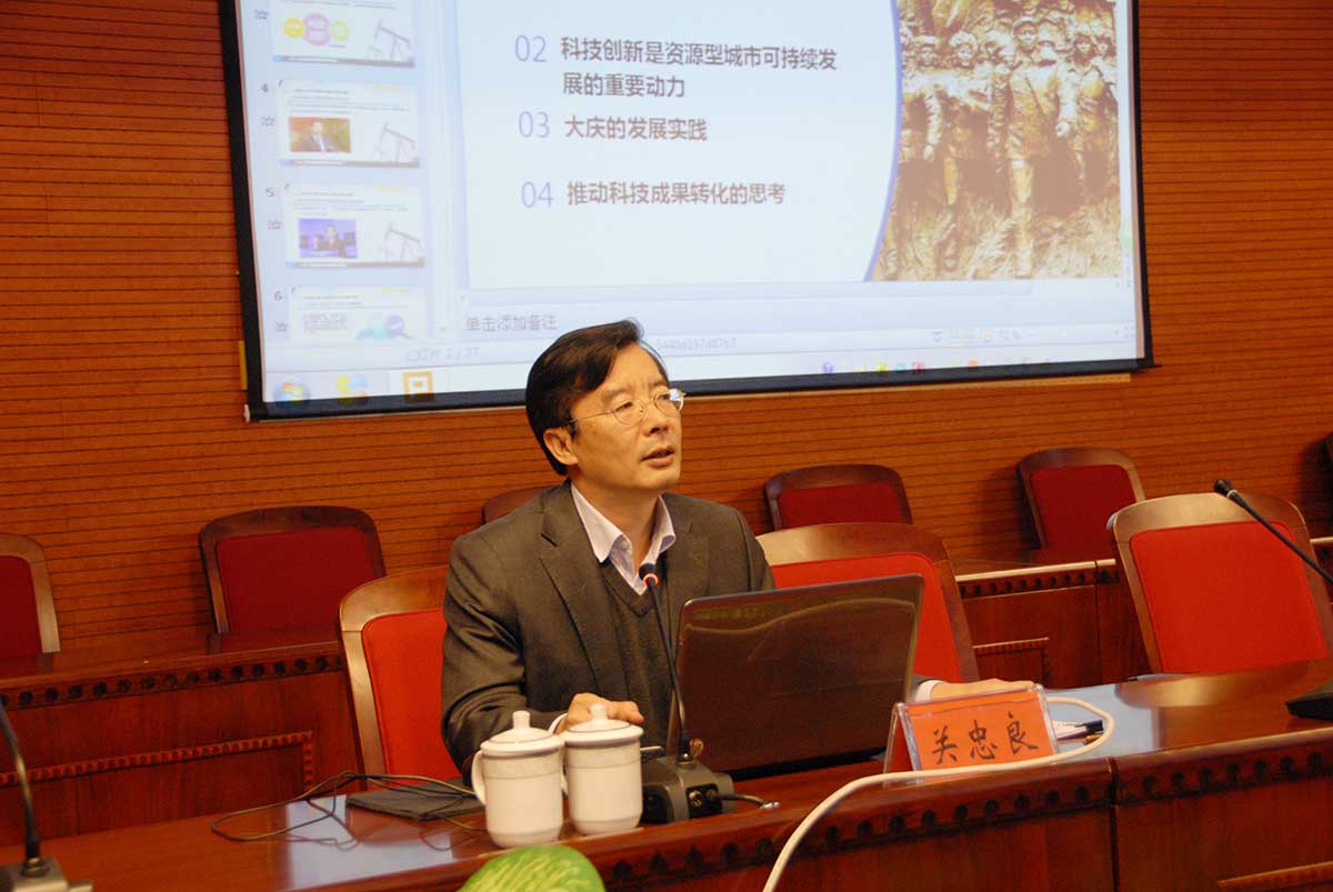 在学校举办的“大庆发展论坛”上,关忠良副市长就大庆科技进步、创新发展作了题目为《科技创新与资源型城市可持续发展》的主题演讲。