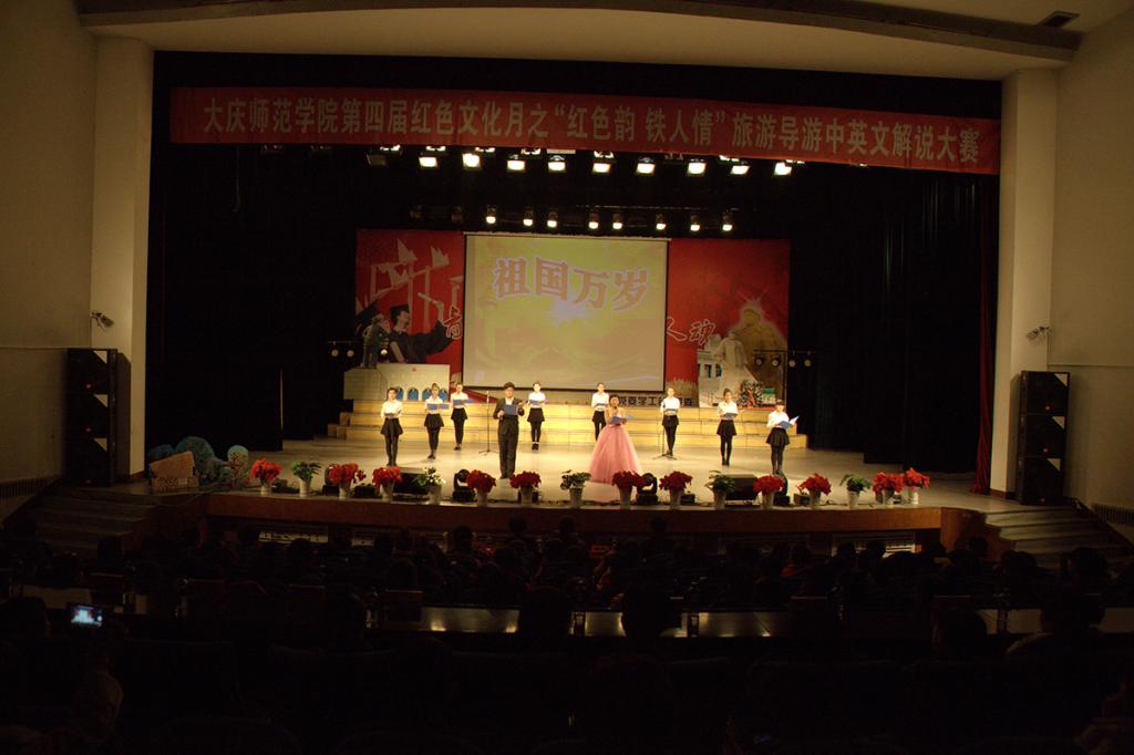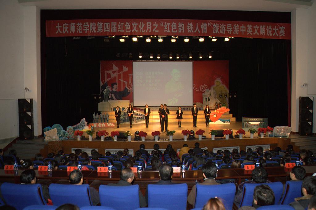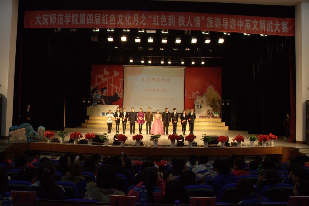 2014年11月13日,由大庆师范学院党委学工部、团委主办,经济管理学院和外国语学院共同承办的“红色韵,铁人情”中英文导游解说大赛在大学生活动中心隆重举行。