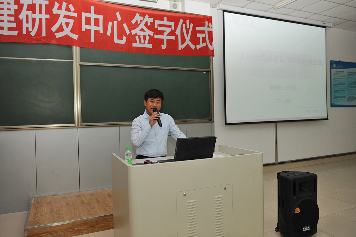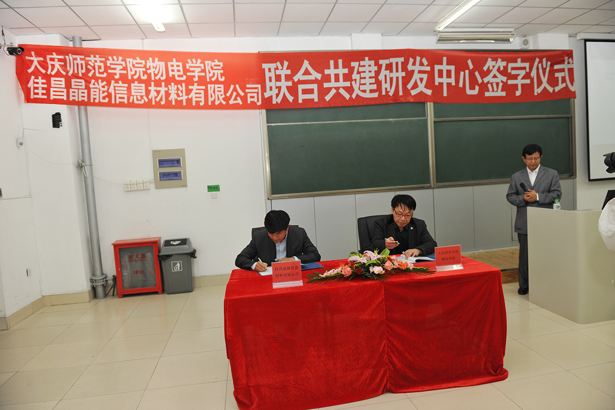 为了充分发挥行业、企业在高等教育改革转型中的作用,促进学院与企业的深度合作。9月24日,物理与电气信息工程学院与大庆佳昌晶能信息材料有限公司校企合作签约仪式在我校隆重举行。大庆佳昌晶能信息材料有限公司董事长王文昌、副校长杨锐锋,物电学院院长徐权,物电学院党总支书记高玉芝及物电学院师生代表出席签约仪式。