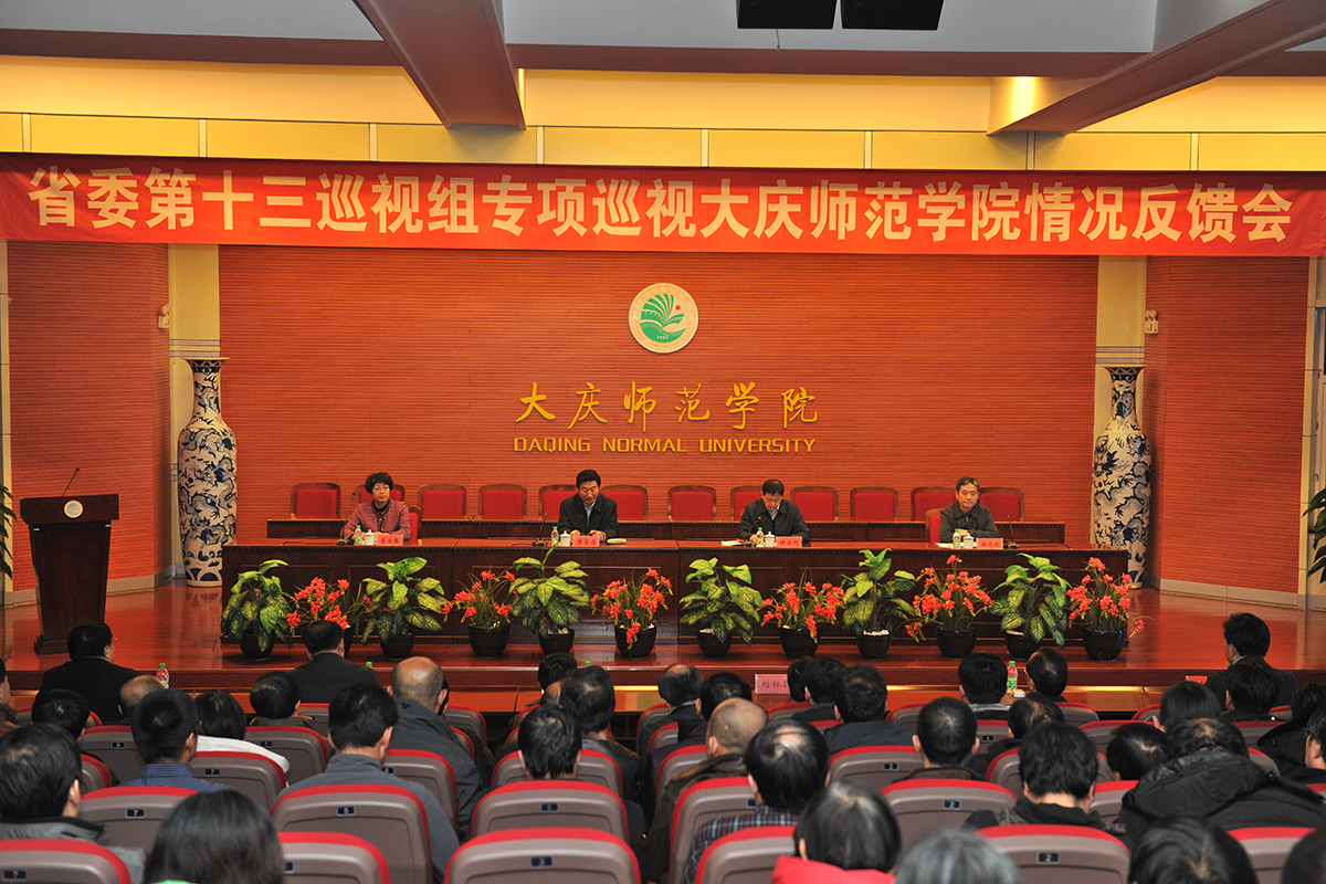 樊占盛指出,多年来,大庆师范学院坚持立足大庆、融入油化、服务龙江、辐射全国的发展思路,秉承“质量立校、人才强校、学术兴校、特色办校”的办学思想,形成了用大庆精神、铁人精神办学育人特色。学校党委班子认真学习贯彻习近平总书记系列重要讲话精神,能够与中央和省委、油田党委保持高度一致;坚持民主集中制原则,领导班子团结,整体功能发挥的比较好;认真执行《干部任用条例》,选人用人公开透明,干部队伍保持平稳发展。