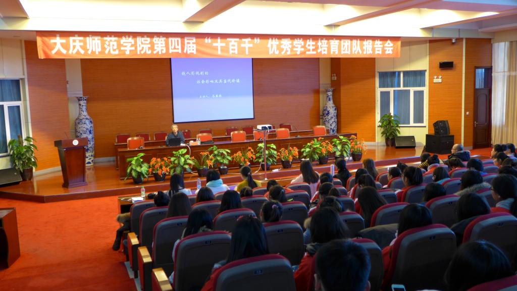 为了更好的继承发扬大庆精神、铁人精神,不断提升“十百千”优秀学生培育团队成员的综合素质,11月25日下午,学生工作处、团委在博雅讲堂邀请黑龙江省优秀教师、大庆市优秀人才马英林作了《铁人影视剧的社会影响及其时代价值》专题报告,团队成员和指导教师聆听了精彩报告。