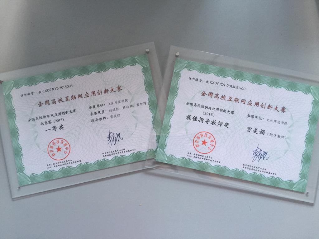 我校计算机科学与信息技术学院贾美娟老师带领网络工程系学生制作的作品“基于物联网的超市智能购物车系统”参加了奖项角逐,最终赢得了全国创意赛一等奖的好成绩,贾美娟老师荣获最佳指导教师奖。
