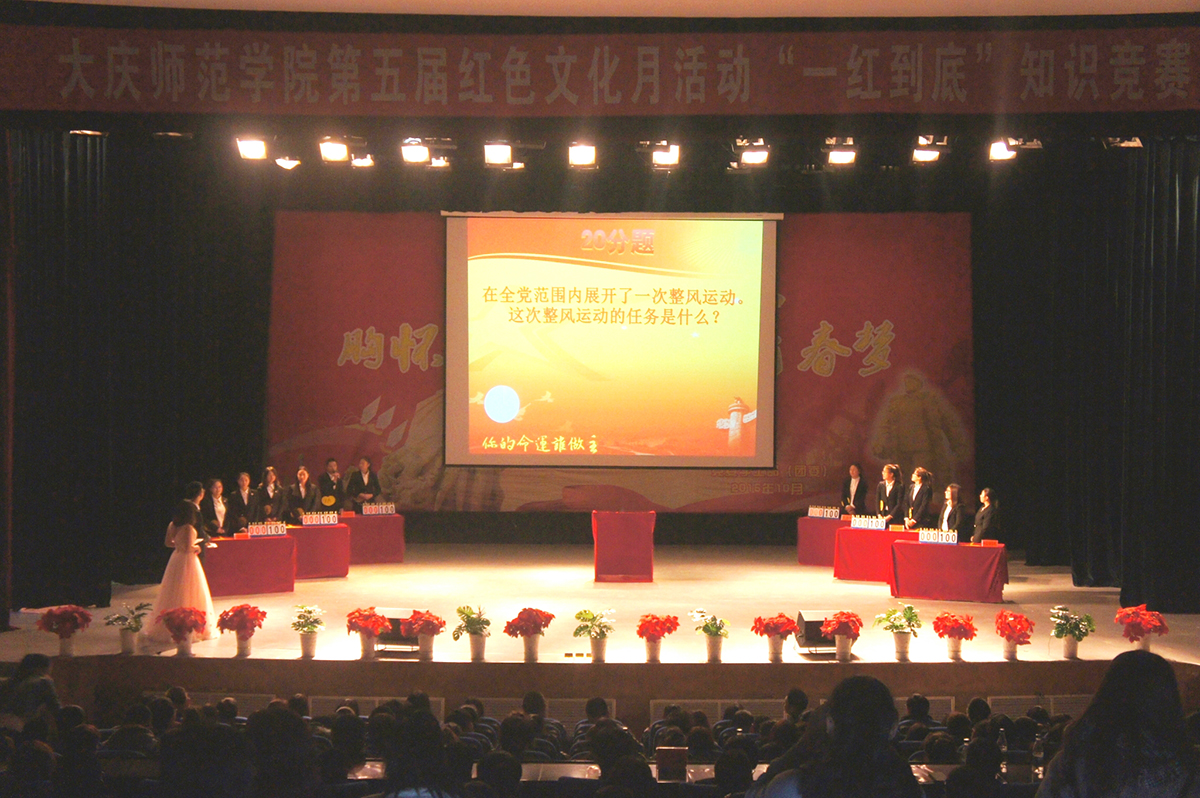 本次知识竞赛活动分“验你行不行”、“你的命运谁做主”、“你将一红到底”三个环节。各代表队通过抽签分为A、B两个小组,竞赛选题以校史类、党史类、大庆铁人类、红色影音类为主,参赛选手通过限时答题、小组相互问答等方式进行比赛。各组参赛选手沉着冷静,认真思考,应答如流,竞争激烈。