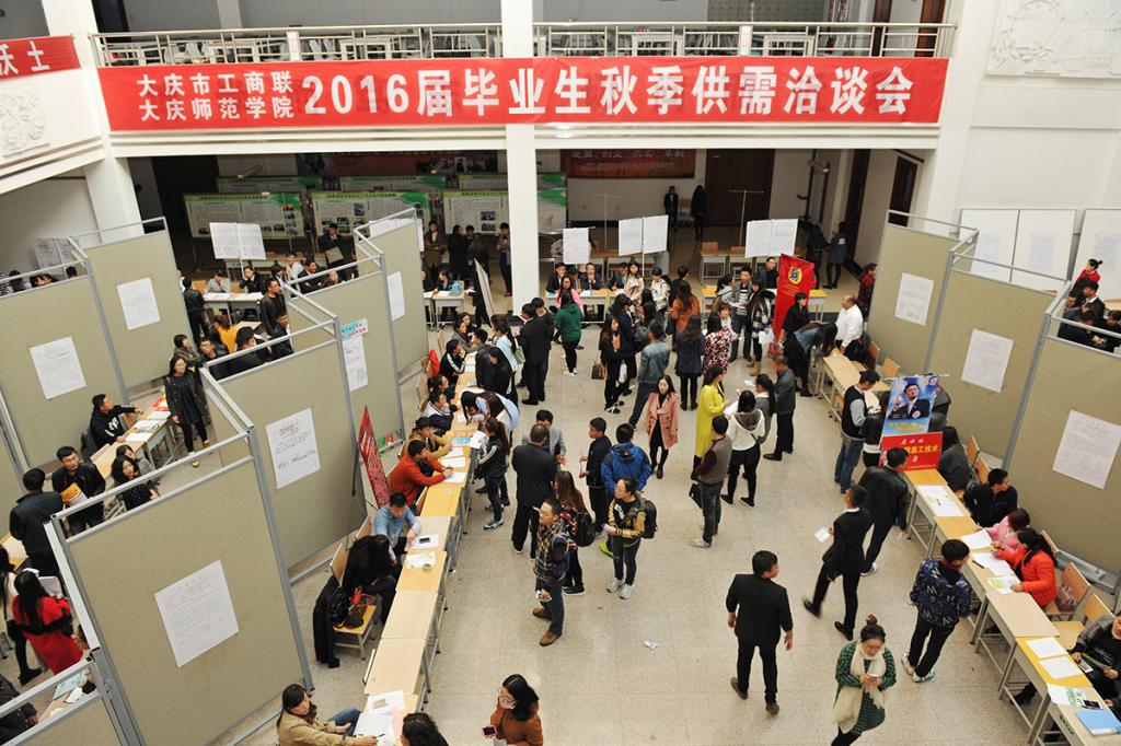 10月14日下午,大庆市工商联和我校联合举办的“2016届毕业生秋季供需洽谈会”在我校图书馆举办。市工商联副主席、学校主管领导、各学院就业相关人员纷纷到洽谈会现场了解用人单位和学生双方的需求,及时掌握就业市场信息,积极推荐毕业生。