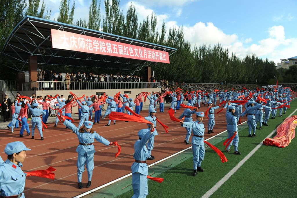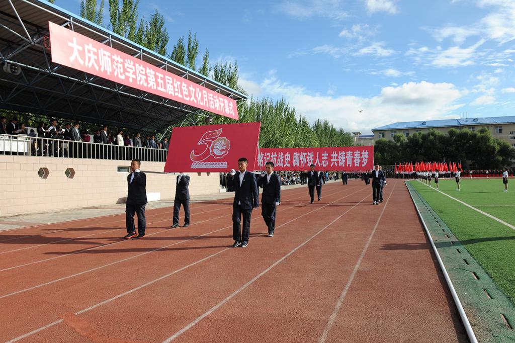 最后,学校党委副书记刘恒讲话。他说:学校第五届红色文化月的开幕,是我校校园文化生活中的一件盛事。学校走过了50年的辉煌历程,逐步形成了自己的育人特色----铁人精神育人。铁人精神已经植根于同学们的心田,融入了同学们的血液。用铁人精神哺育出来的一批批庆师学子已经成为母校的荣耀、社会的骄傲。持续开展红色文化活动,使我们找到了历史的依托和精神的归属,为祖国培养铁人式的建设者和接班人的人才培养目标落到了实处。