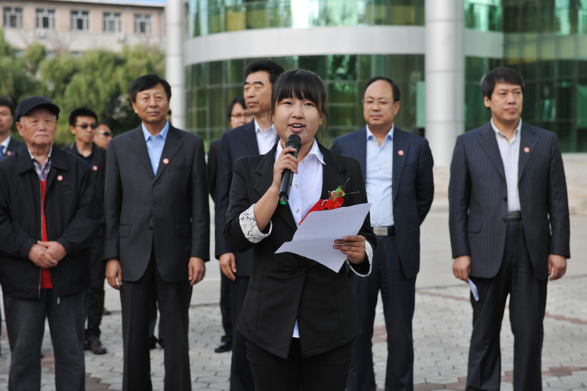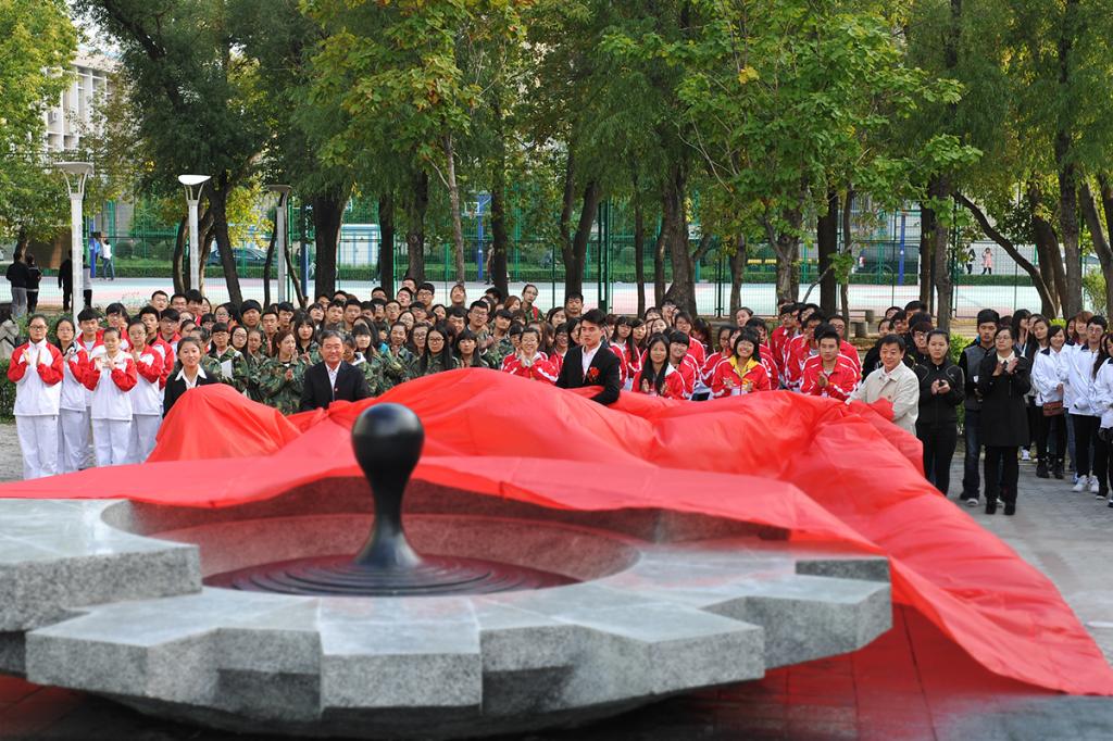 学校领导班子全体,来校参加校庆活动的学校老领导以及二级学院领导、毕业生、在校生代表800余人参加了雕塑揭幕仪式。