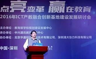 1月10日至11日,由教育部学校规划建设发展中心主办,中兴通讯公司承办的教育部——中兴通讯ICT(信息通信技术)产教融合创新基地建设研讨会在深圳召开。会议以“点亮变革,赢在教育”为主题,共同研讨产教融合创新基地的建设与发展情况。