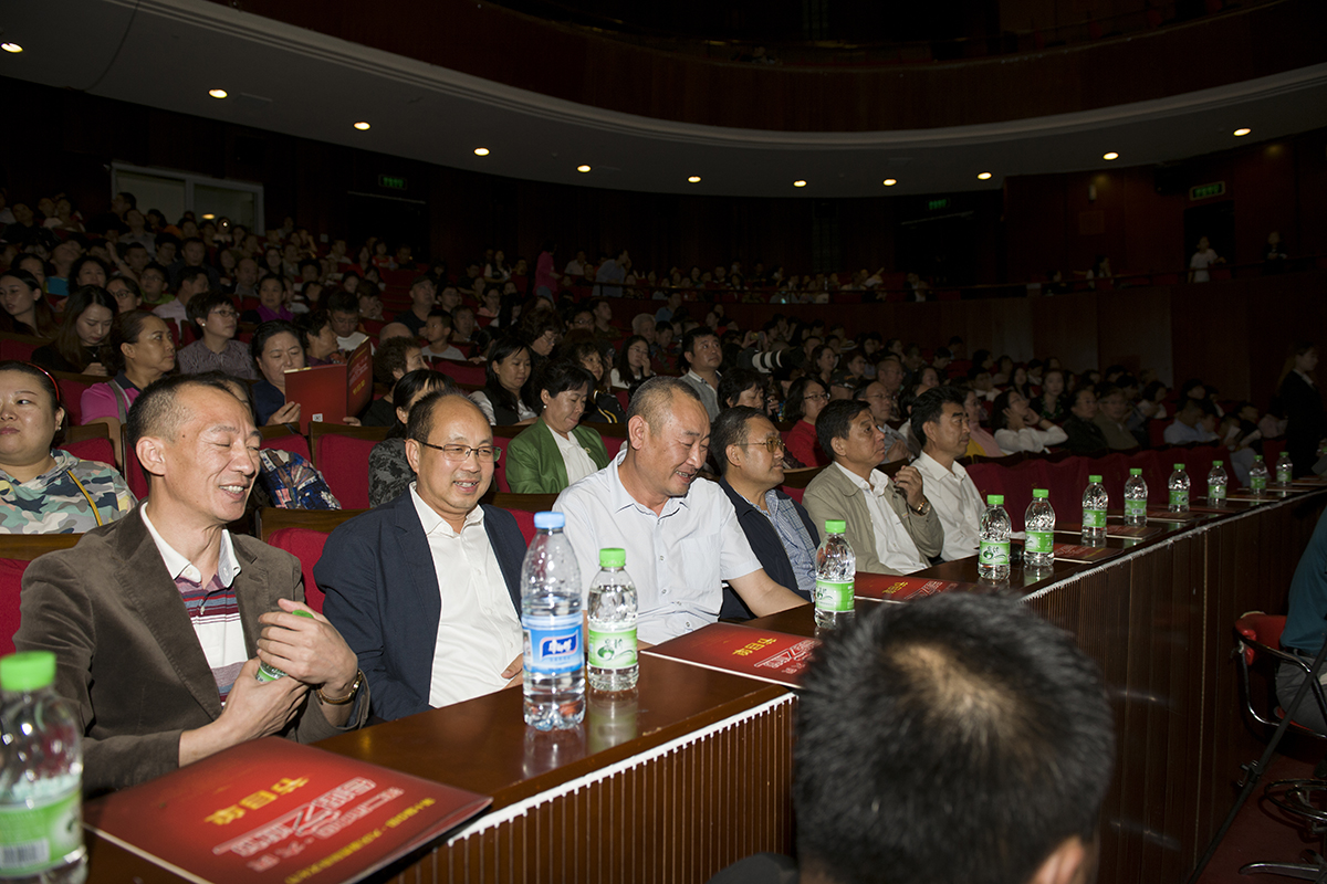 演出结束后,校领导上台慰问演员,祝贺演出成功。