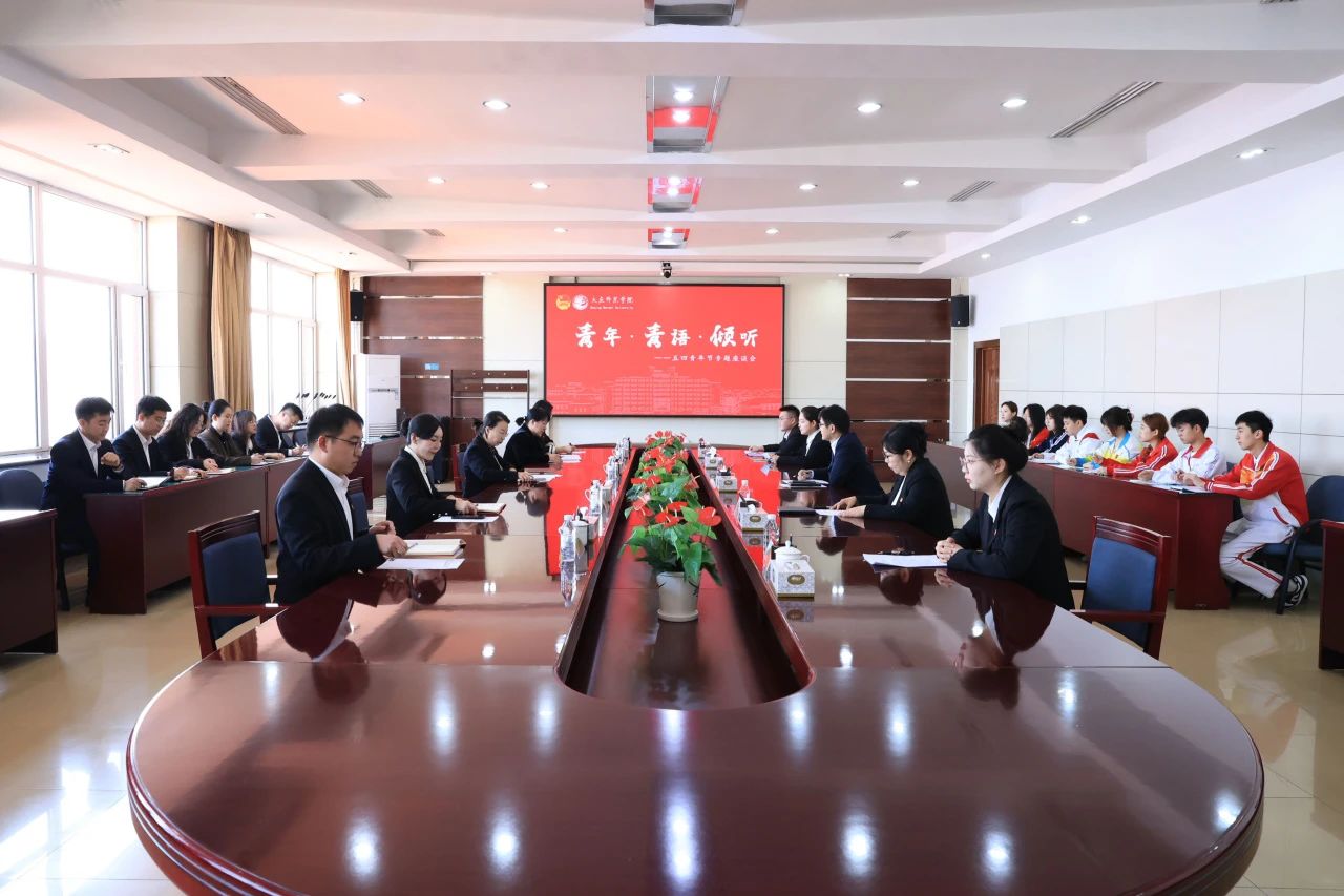五四青年节前夕,我校召开青年·青语·倾听——五四青年节专题座谈会,共同纪念五四运动106周年,传承五四精神,激发新时代青年的责任与担当。党委副书记、工会主席刘迪,团委、二级学院团委负责人,青年师生代表60余人参会。
