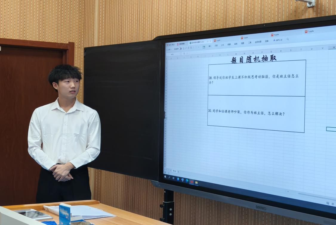 竞赛设置5分钟主题班会讲解、3分钟结构化问答两大核心模块,按文科、理科、艺体三大专业类别分组比拼,全方位考察选手的教学设计、沟通表达与应急处理能力。经各学院前期初赛的层层遴选与严格考核,48名学生脱颖而出,成功晋级校级决赛。赛事全程吸引全校师生广泛关注,既充分展现了学校师范生扎实的专业基础与良好的综合素养,也为未来教育人才培养注入了强劲动力。