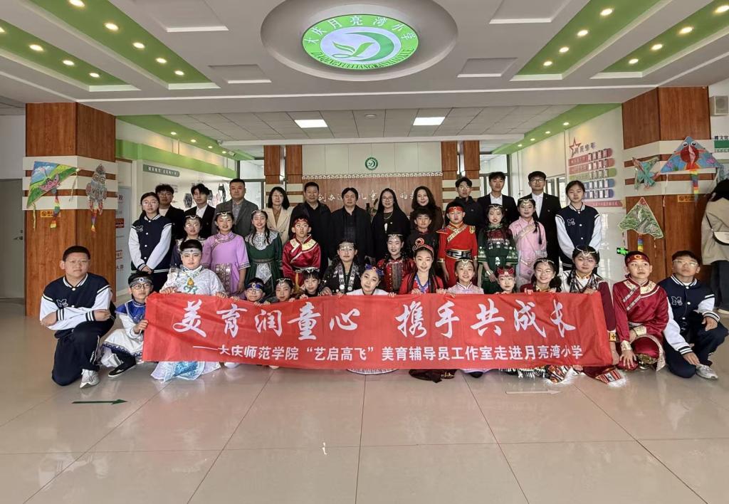 为深入落实“五育并举”教育方针,扎实推进大中小学校一体化美育深度融合,2026年4月16日,月亮湾小学召开“鸢舞春风润美育 红色铸魂育新人”主题美育教研活动。萨尔图区教育局副局长马铫,大庆市教师发展学院美术教研员冯亚出席活动,大庆师范学院美术与设计学院党总支书记、院长张立翔,副书记孙琦、学工办主任邱恒,教师代表杨俊峰教授及学生参加本次活动。